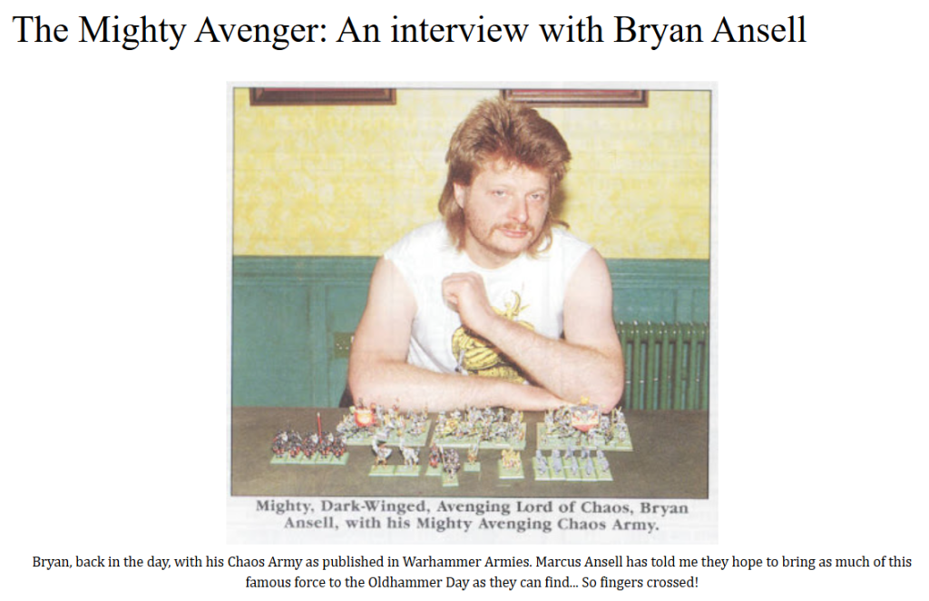 Bryan Ansell, Mike McVey, Tony Ackland, Rick Priestley, and Bill King are just a few of the hobby heavyweights you’ll find conversations with over there. It really is a treasure trove for anyone interested in Games Workshop during that uniquely special Ansell era.